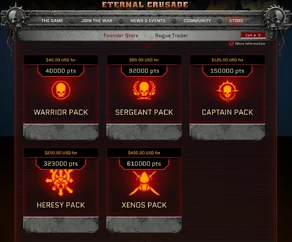 - ↑ "Point Bundles" Eternal Crusade Founder Store