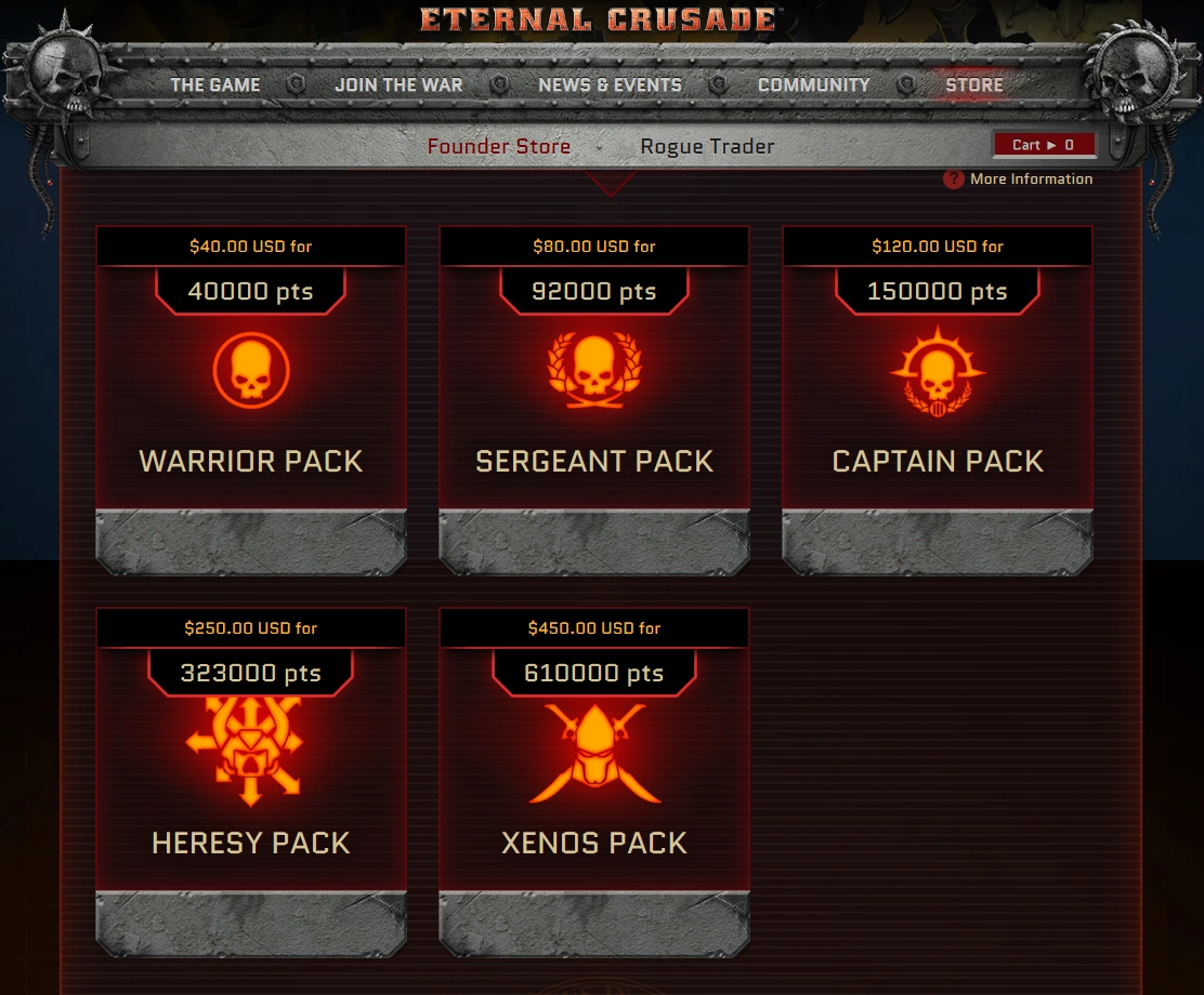 - ↑ "Founder Packs" Eternal Crusade Founder Store